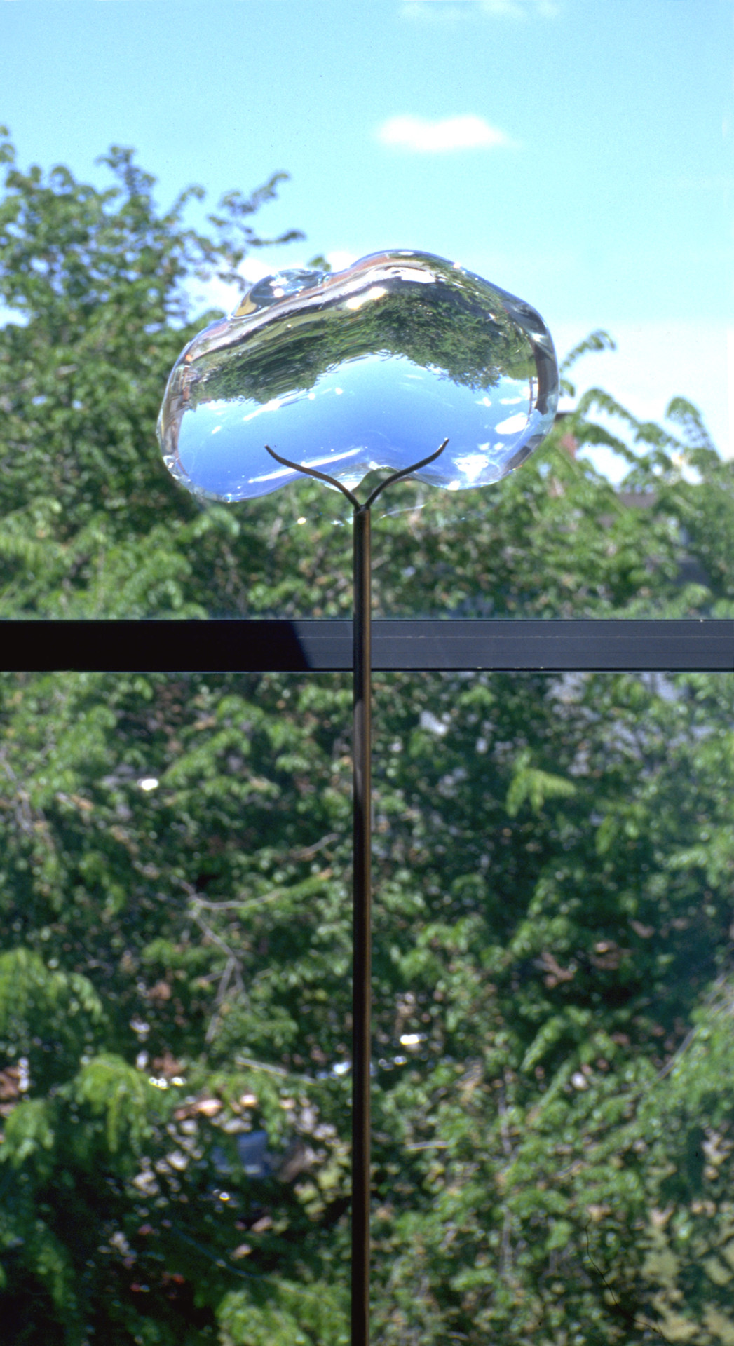 The series originated during graduate study at the Rhode Island School of Design, beginning with investigations into optical illusion created by water-filled blown glass. It later evolved into window-based installations during the artist’s early studio practice, transitioning from large-scale water-filled blown glass forms to solid optical glass elements that function as lenses. Activated by natural light and the surrounding environment, these works explore optical illusion through refraction, magnification, and distortion.